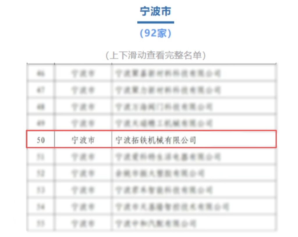 喜報!寧波拓鐵機械有限公司成功入選第七批國家級專精特新“小巨人”企業