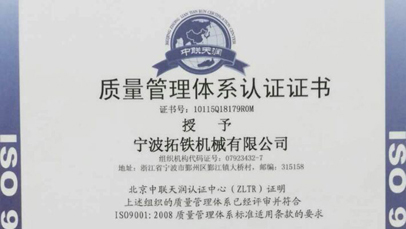 2015年11月,拓鐵機(jī)械獲得國(guó)家ISO9001質(zhì)量管理體系認(rèn)證